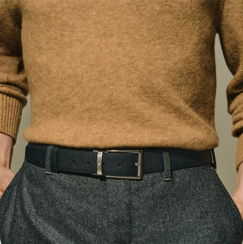Двухсторонний мужской ремень Montblanc: кожа черного и коричневого цвета 35 мм от магазина премиальных ручек Premium Pens в Королеве.