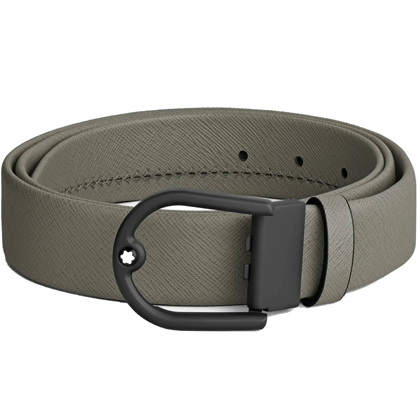 Кожаный ремень 35 мм из кожи серого цвета, пряжка в форме подковы от магазина премиальных ручек Premium Pens в Королеве.